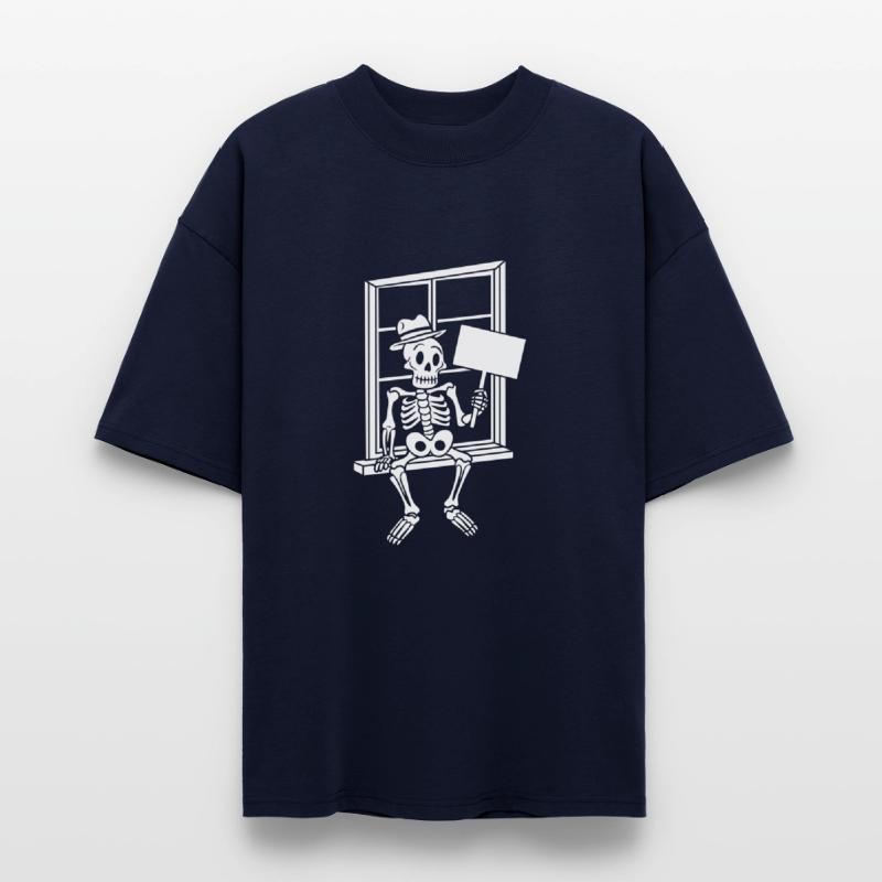 Skeleton On Window Blank Sign Vector One Color